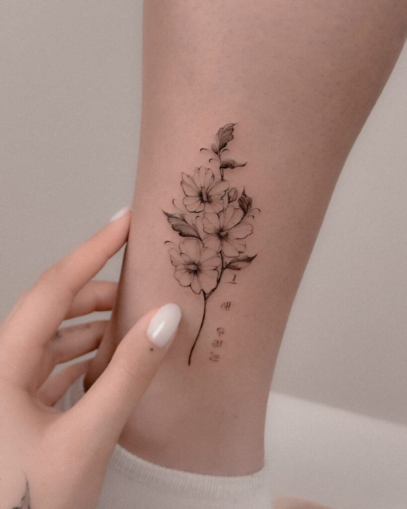 Symbolizing simplicity, clarity, and personal meaning, this tattoo is perfect for minimalists. The understated design keeps it versatile and timeless, offering quiet elegance and a deeply personal connection through subtle floral symbolism.