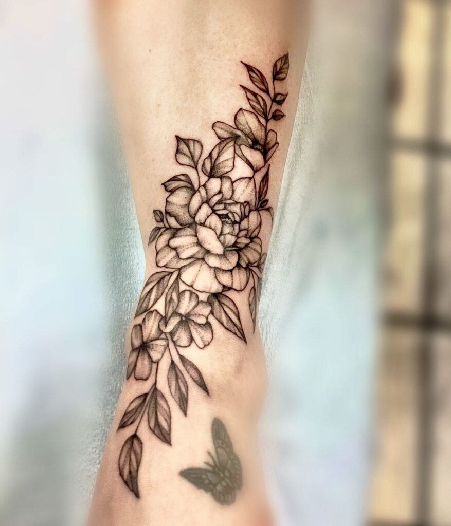 Symbolizing growth, resilience, and beauty through change, this floral tattoo feels grounded and mature. Its detailed yet soft execution makes it a refined choice for those who appreciate classic floral artistry.