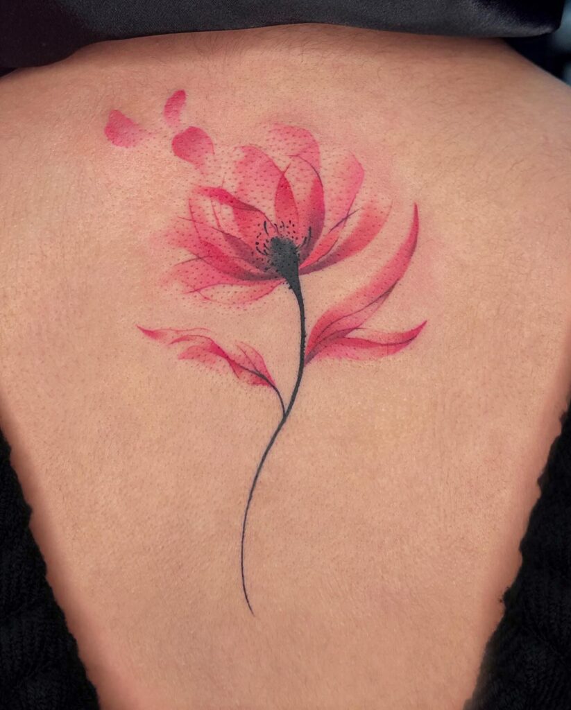 Representing passion, strength, and emotional intensity, this flower tattoo feels expressive and modern. Its painterly effect makes it ideal for those who want floral art that feels alive and dynamic.