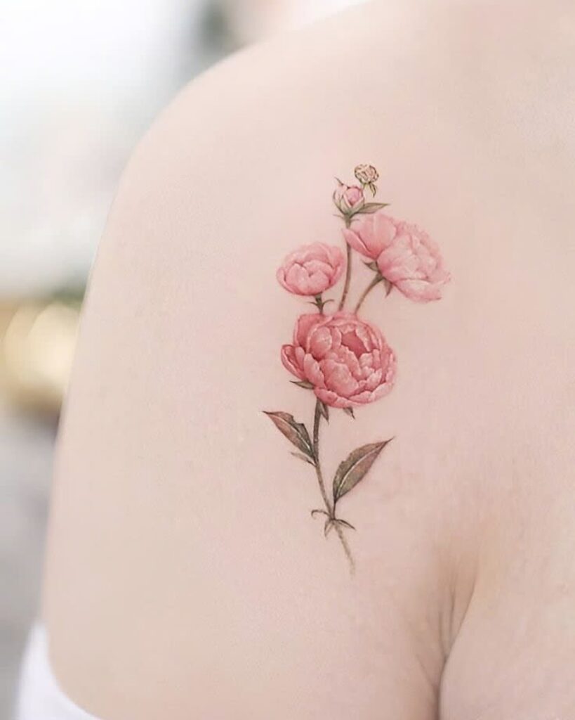 3. Soft Pink Peony Shoulder Tattoo
