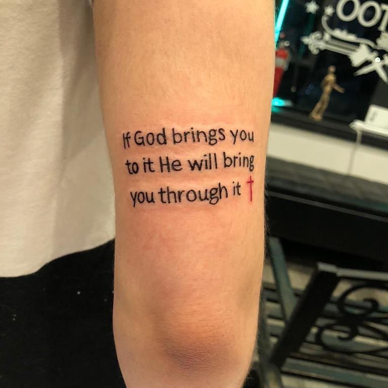 Text tattoos often serve as daily reminders of faith, resilience, or personal beliefs. This design is ideal for those who want their values expressed clearly and meaningfully. The minimal styling ensures the message remains the focus, making it both personal and powerful.